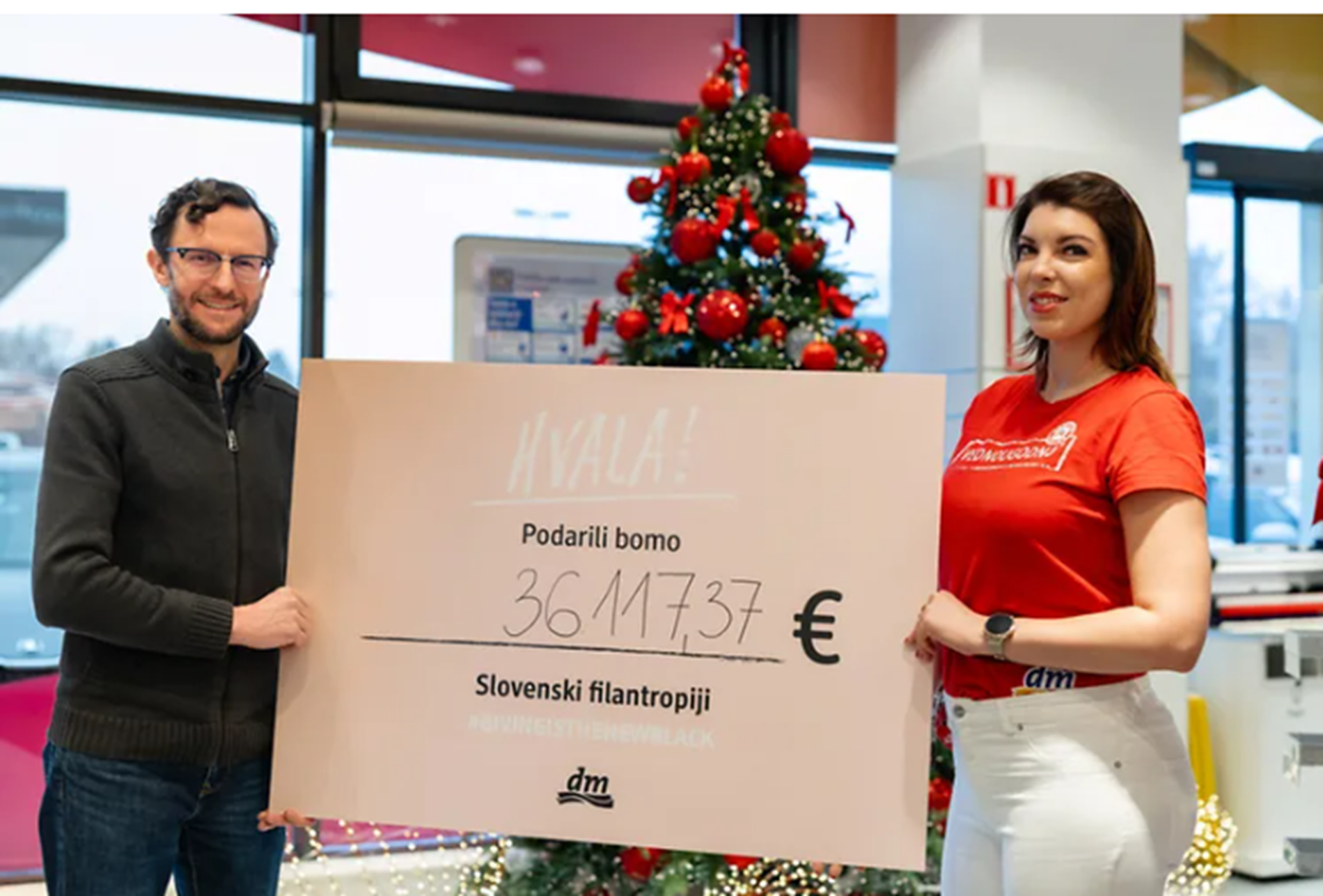 V našem podjetju smo že šesto leto zapored na Dobrodelni petek, kot smo preimenovali potrošniški črni petek, pet odstotkov dnevnega prometa namenili v dobrodelne namene. Znesek v višini 36.117,37 evrov smo letos namenili Slovenski filantropiji - združenju za promocijo prostovoljstva.